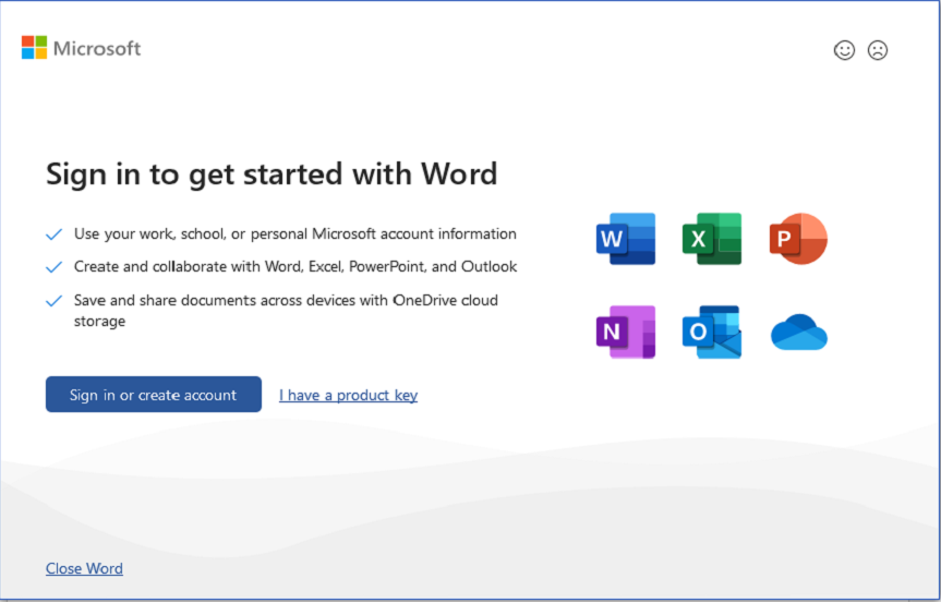 - Open Microsoft Word or Excel and log in if prompted.