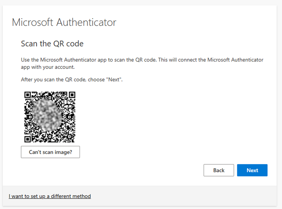 - Once the QR code is generated as on the screen below, proceed with scanning the QR code through the Authenticator app.