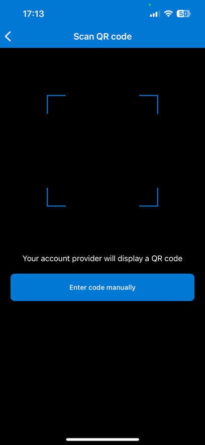 - Select Scan QR code and scan the QR code provided on the screen.