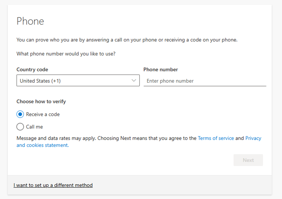 - If you don’t have a smartphone or can’t use the Authenticator app, you can set up MFA over your phone number.