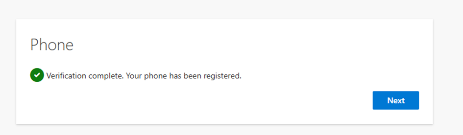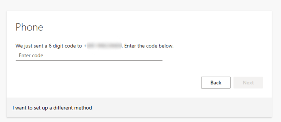 - Enter the code that is provided to you over the message or call and click Next.