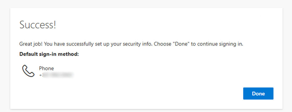 - You should receive confirmation that it’s set up successfully, click Done to finish the sign in.